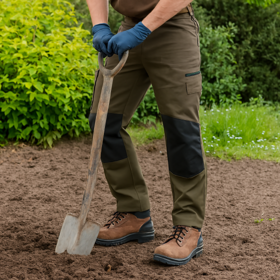 Praktische Taschenlösungen wie eine Cargo‑Tasche, eine Zollstocktasche sowie flache Gesäßtaschen bieten ausreichend Stauraum für Werkzeuge und Alltagsutensilien. Die Kniepolstertaschen aus robustem Cordura sind zusätzlich mit seitlichen Belüftungen ausgestattet – ideal für Arbeiten in kniender Position. Wasserabweisende Reißverschlüsse und ein langlebiger YKK‑Frontverschluss runden das Gesamtpaket ab.