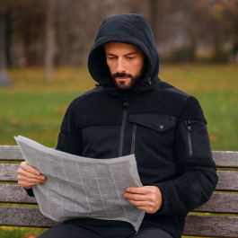 Jacke mit kuscheligem Teddyfutter, wasserabweisenden YKK‑Zips und elastischem Micro‑Stretch; farbecht, formstabil, wetterfest und mit funktionaler Kapuze für Alltag & Outdoor.