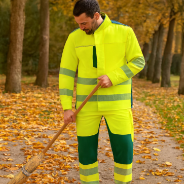 Sicher sichtbar – einsatzbereit bei jedem Wetter Ob beim Straßenbau, auf dem Betriebshof oder im Außeneinsatz: Diese hochsichtbare Schutzkleidung sorgt für maximale Sichtbarkeit und zuverlässigen Schutz. Die Kombination aus reflektierenden Streifen, wetterfestem Material und funktionalem Schnitt macht sie zur idealen Wahl für Profis im Einsatz.